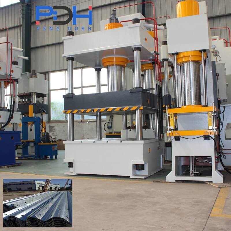 As placas de proteção contra impactos em rodovias são moldadas em uma única peça utilizando uma prensa hidráulica para defensas metálicas onduladas e um conjunto completo de moldes. Seu modelo e especificações são geralmente determinados pela capacidade de produção e tonelagem. As prensas hidráulicas para conformação de chapas onduladas em rodovias normalmente utilizam prensas hidráulicas . A mesa de trabalho, a abertura e o curso necessários podem ser personalizados de acordo com as necessidades.
